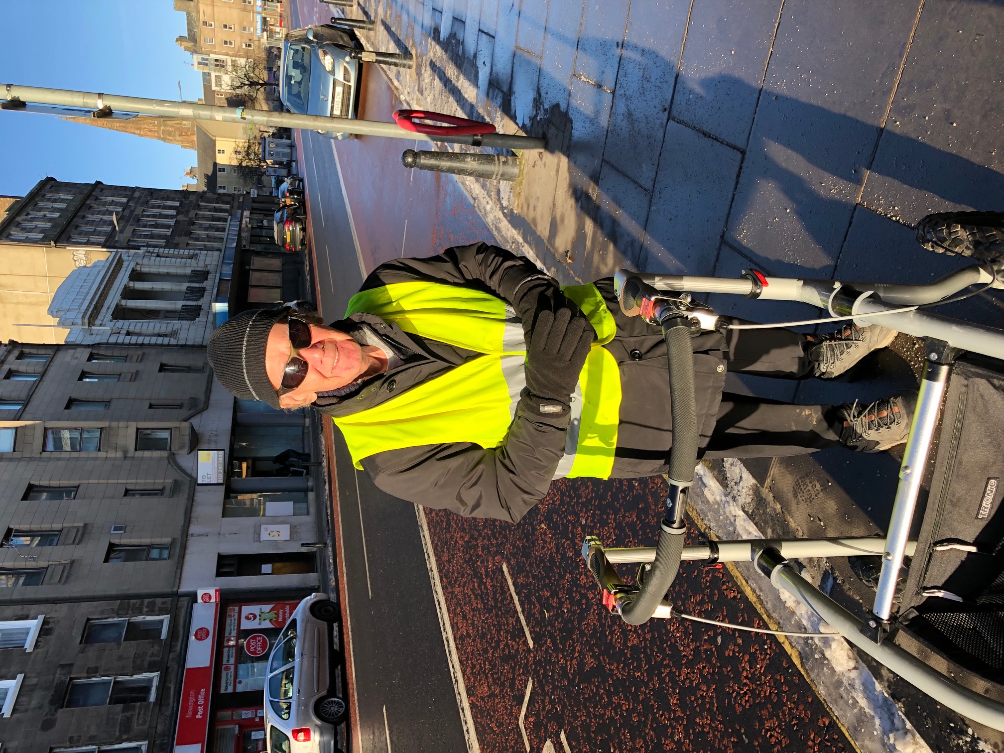 Folding it, especially in the tram, is not easy.
