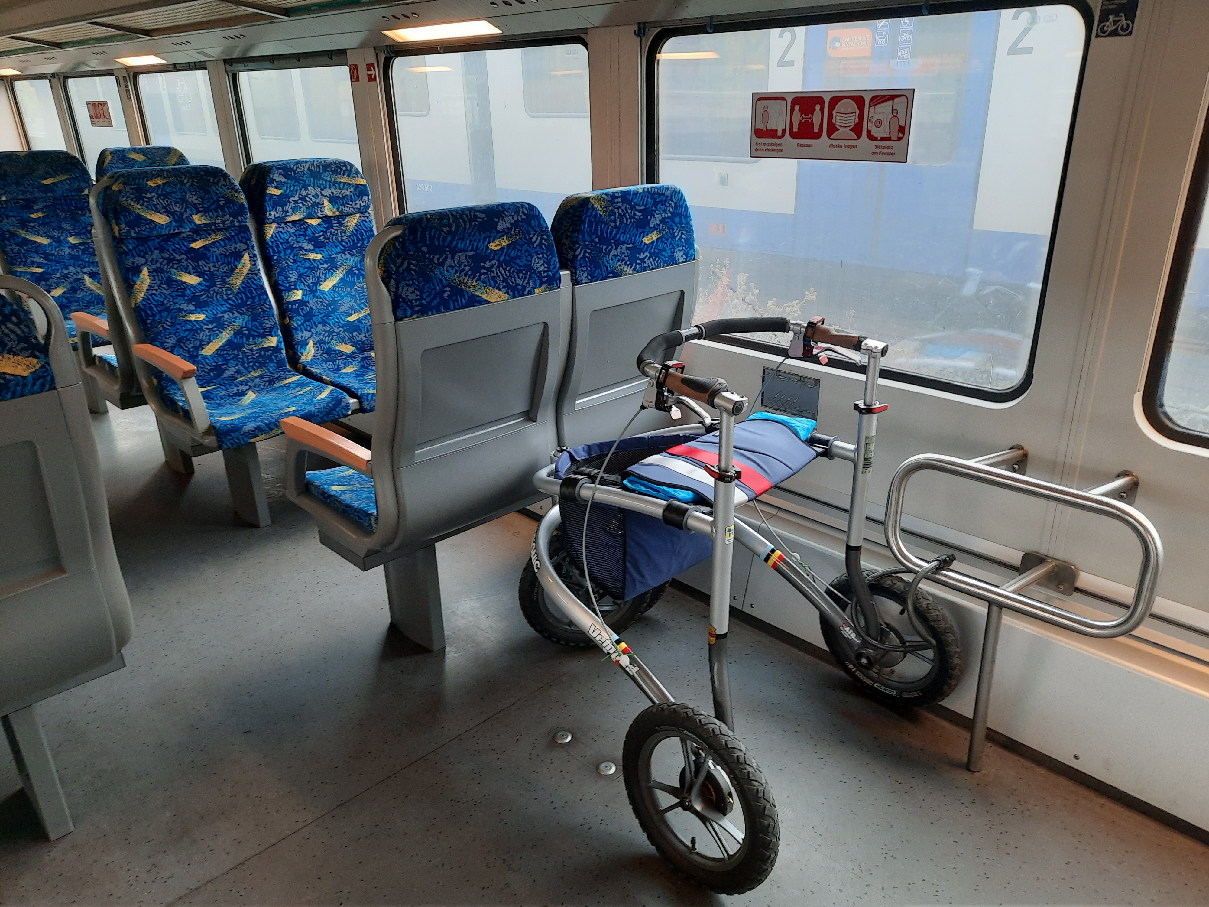 My shoulders and arms, which used to get all the shocks from every unevenness of the ground with a quite good but common rollator, could now relax. It is also very smooth, and walking is no longer so strenuous. I can finally get around on forest paths or by the pond with my two dogs. A clear improvement in my quality of life.