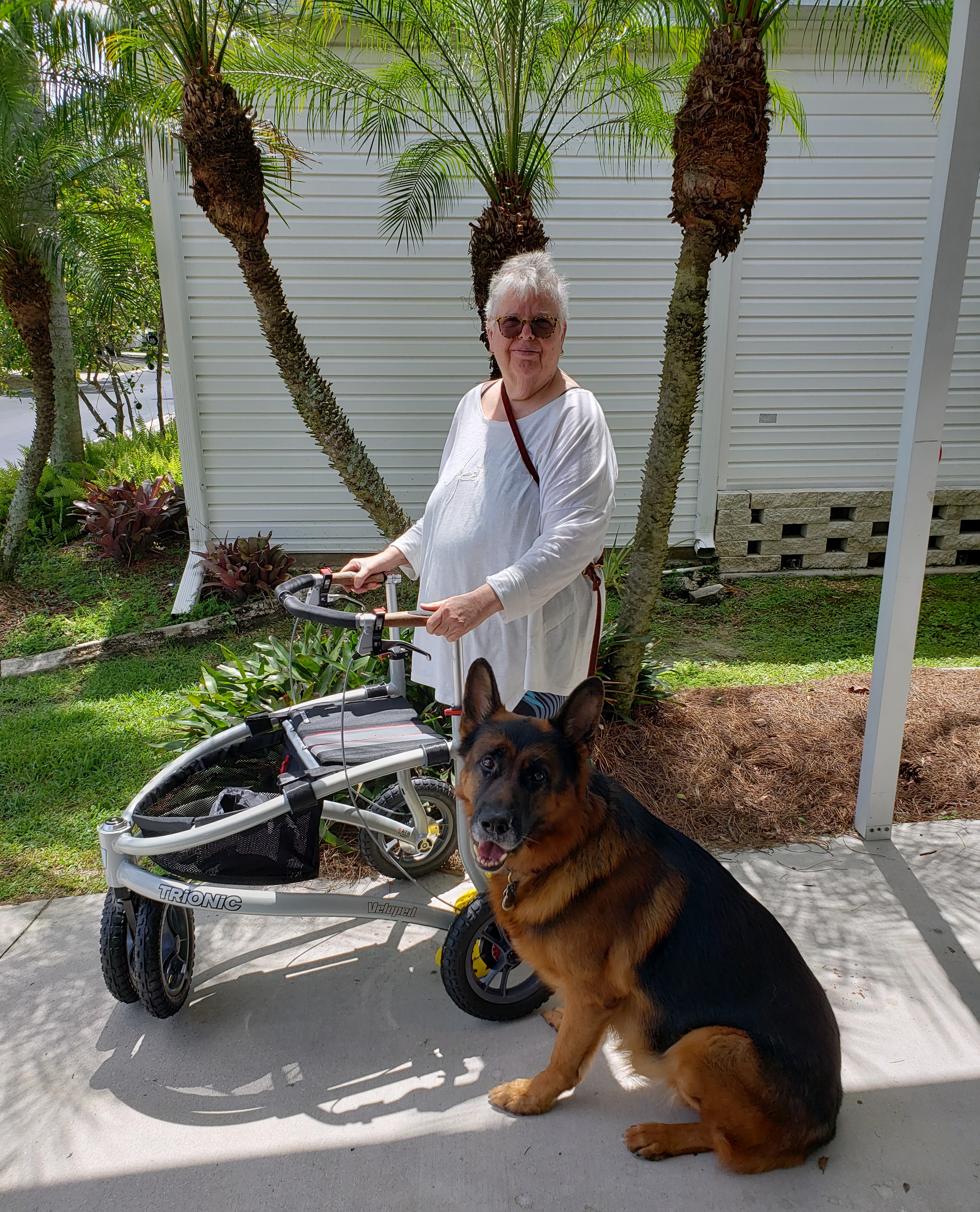 When we retired from farming 3 years ago, it never occurred to me to sit on my butt and watch the world go by. I had spent years doing barn chores without a thought to my mobility. There were wheelbarrows, carts, brooms, shovels, forks, scrapers and so on. I always had something in my hands to steady my balance. I knew I could figure out how to get around in my new reality. I found this amazing Swedish product online, and my paradigm shifted! I have been using a Veloped Trek for exactly one year now, logging 3 miles a day on our morning walk "around the block". Thank you, Trionic!