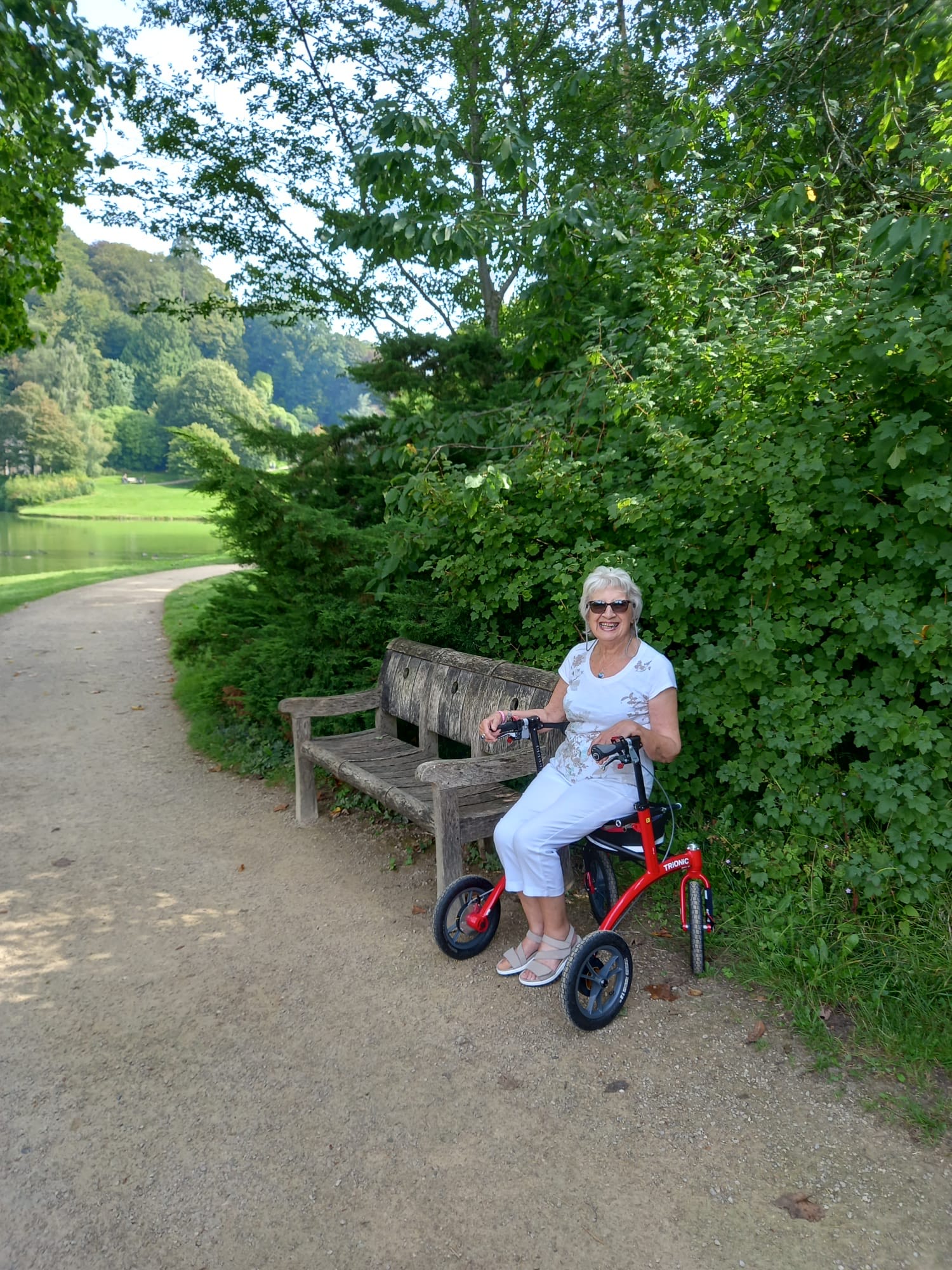 Trionic's customer service couldn't be more accommodating if they tried. They helped me choose the right aid for my individual needs. My foldable Walker 12 S rollator meets my needs for stable support and transport that feels gentle on the body. Thanks to the large air-filled wheels, it takes me smoothly over thresholds, uneven sidewalks and other terrain and it is easy for me to place between the front and back seats in the car.